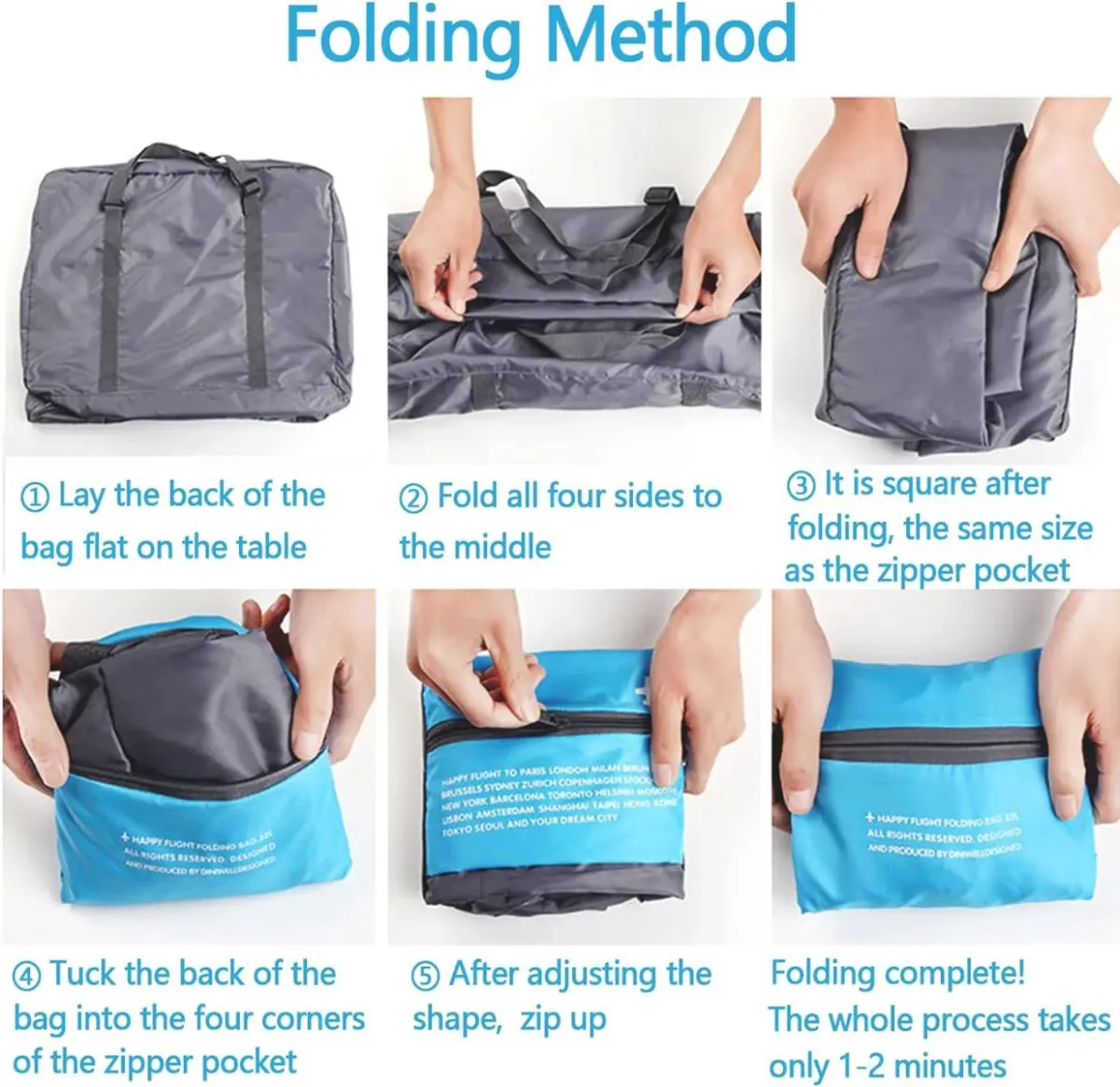 Plegable: el tamaño expandido de la bolsa de viaje es de 50cm de ancho x 34cm alto x 16cm profundidad, y el tamaño plegado es de 19x14cm, lo que solo ocupa un espacio pequeño. También se puede utilizar como una bolsa de repuesto durante el viaje, que es muy fácil de llevar.